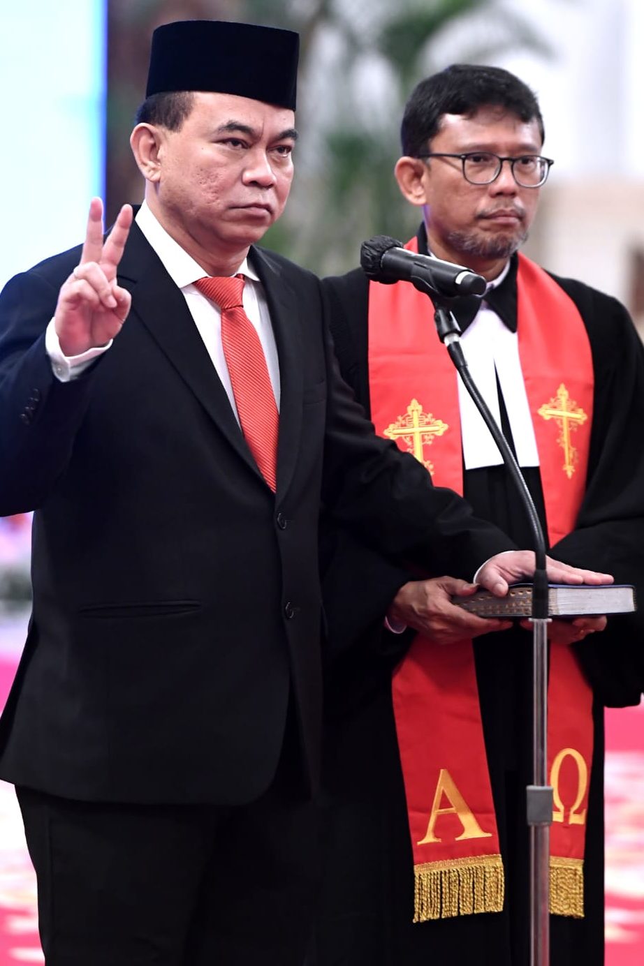 Budi Arie Setiadi dilantik berlandaskan pada Keputusan Presiden Republik Indonesia Nomor 62/P Tahun 2023 tentang Pengangkatan Menteri Komunikasi dan Informatika Kabinet Indonesia Maju Periode Tahun 2019-2024. Dalam kesempatan tersebut, Presiden Jokowi mengambil sumpah jabatan menteri yang dilantik.