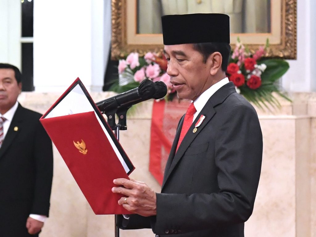 “Saya bersumpah bahwa saya akan setia kepada Undang-Undang Dasar Negara Republik Indonesia tahun 1945 serta akan menjalankan segala peraturan perundang-undangan dengan selurus-lurusnya demi darmabakti saya kepada bangsa dan negara. Bahwa saya dalam menjalankan tugas jabatan akan menjunjung tinggi etika jabatan, bekerja dengan sebaik-baiknya, dengan penuh rasa tanggung jawab,” ucap Presiden mendiktekan sumpah jabatan.