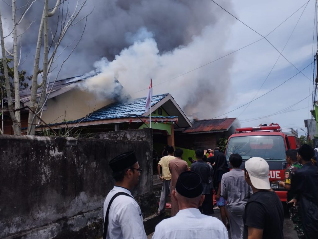Sedikitnya empat rumah warga hangus dilahap si jago merah dan satu lainnya terdampak, akibat kebakaran yang terjadi di saat umat muslim sedang melaksanakan ibadah sholat Jum’at tersebut.