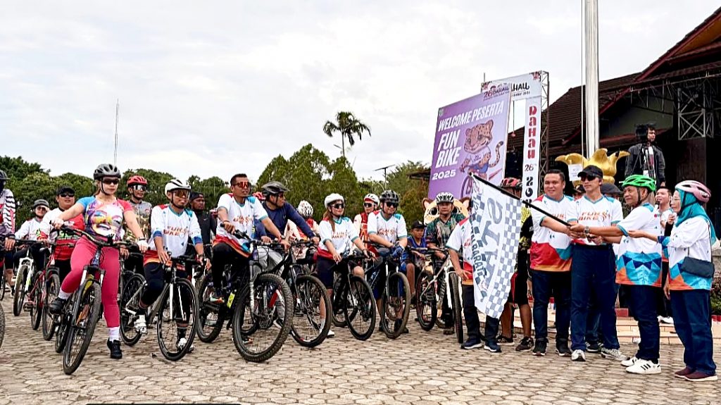 SENDAWAR, takanews.com – Dilepas oleh Wakil Bupati (Wabup) Kutai Barat (Kubar) H Nanang Andriani, ratusan peserta dari berbagai komunitas sepeda ambil bagian dalam kegiatan Fun Bike di Taman Budaya Sendawar (TBS), Barong Tongkok, Kutai Barat Sabtu (25/10/2025) pagi.