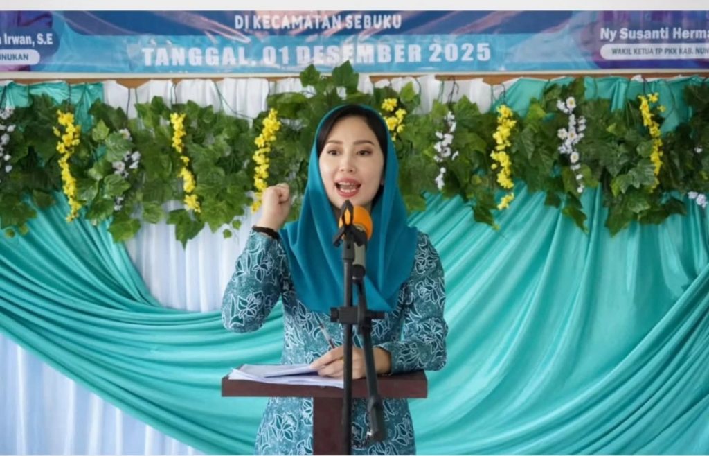 NUNUKAN, takanews.com – Ketua Tim Penggerak PKK Kabupaten Nunukan Andi Annisa Muthia dan Wakil Ketua TP. PKK Kabupaten Nunukan Susanti menghadiri kegiatan Pembinaan dan Evaluasi pelaksanaan 10 Program Pokok PKK di Kantor Camat Sebuku, Senin (01/12/2025).