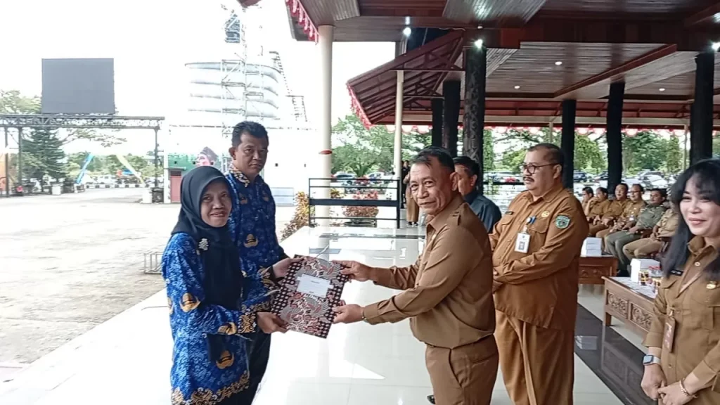 Ia menyerahkan SK secara simbolis dan memberikan penghargaan kepada seluruh pihak yang terlibat, termasuk BKPSDM Kutai Barat dan Badan Kepegawaian Negara Kantor Regional VIII Banjarbaru.