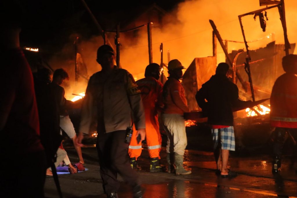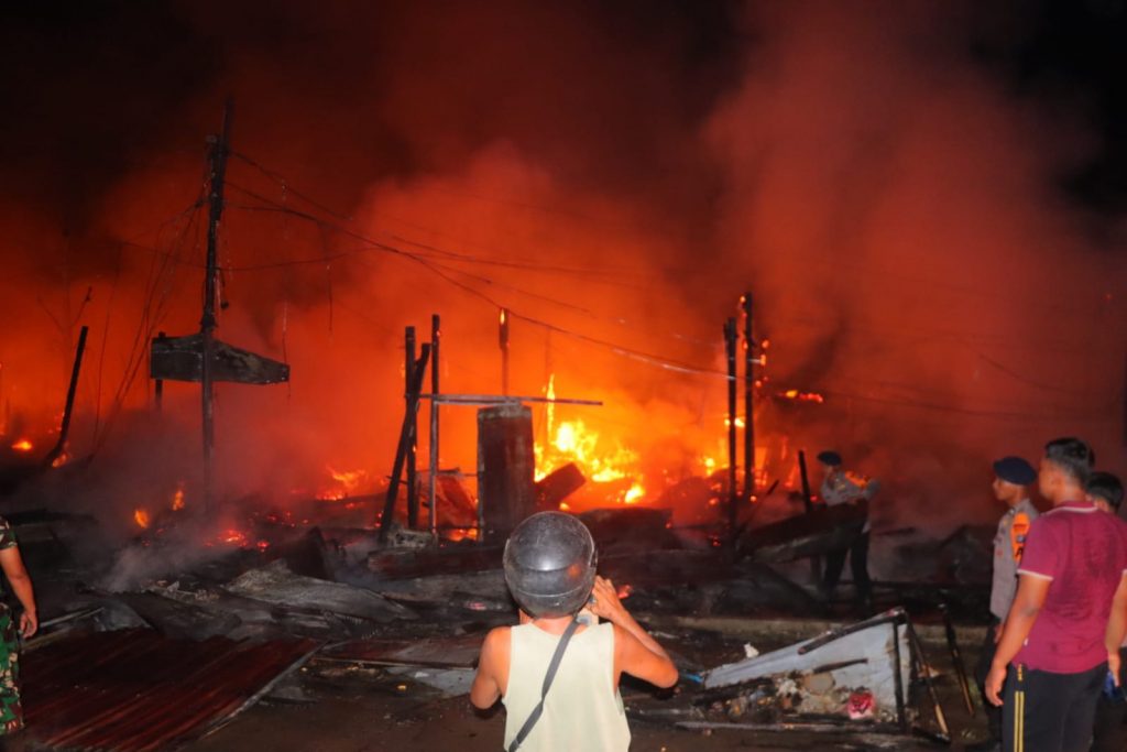 “Dugaan sementara untuk api berasal dari salah satu kios saat menyalin BBM jenis pertalite di garasi parkiran warung/kios sembako,” bebernya.